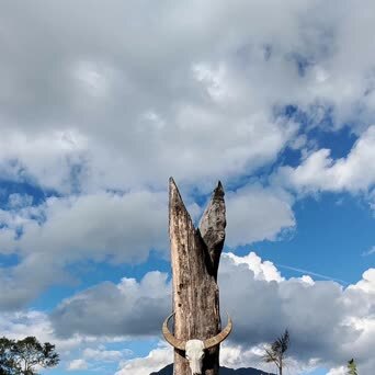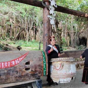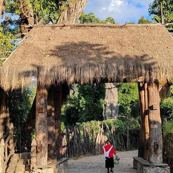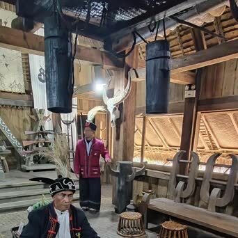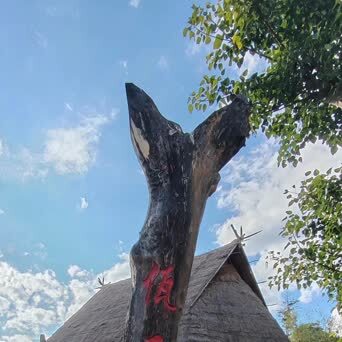 我坐着终末一班不雅光车,行驶了好顷刻间,终于来到了景点大门。一下车,就看到十来个佤族老迈妈衣服民族衣饰,整皆地站成两排夹谈宽待,还挺有庆典感的。寨子外面,有原始祭祀用的东谈主头桩遗址,看着让东谈主既以为惊悸,又充满了奥妙的嗅觉;傍边供奉佤神的神林,又不禁让东谈主产生确信之情。那时我还在念念,这里应该能让我好好感受一番原始部落的魔力了。