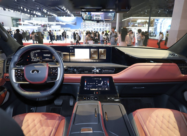 投入车内,新车内饰为黑棕双拼色的盘算,统一大面积的软质材料包裹以及菱形纹路的宽待座椅,豪华感亦然有着显着的升迁,宽待的中控台部分派备有12.3英寸全液晶神态盘(复古AR导航)以及14.3英寸中控触屏(搭载英菲尼迪InTouch 3.0系统),其他竖立部分,2026款英菲尼迪QX80提供全景天窗、64色氛围灯、手机无线充电、24个扬声器Klipsch音响系统、前两排座椅透风/加热、三排座椅加热等竖立。此外,2026款英菲尼迪QX80标配ProPILOT Assist 1.1 16驾驶提拔系统,高配车型提供ProPILOT Assist 2.1 17驾驶提拔系统。