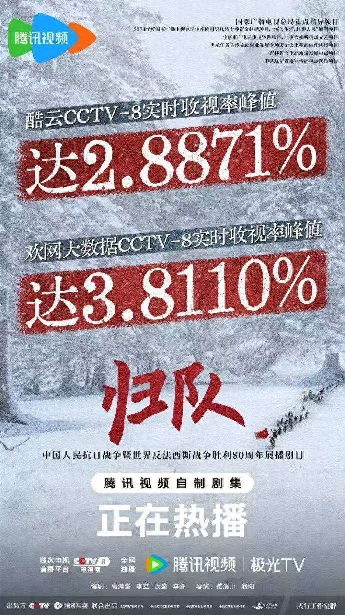 在全民族记念抗战告捷80周年的历史性时分,由国度播送电视总局要点指点、北京市广电局要点援救,中央电视台、腾讯视频出品,无尽头文化长入出品并承制,北京市广电局、中共黑龙江省委宣传部、中共吉林省委宣传部、中共辽宁省委宣传部长入出品,为记念中国东谈主民抗日接触暨宇宙反法西斯接触告捷80周年,推崇正确的二战史不雅而创作的热血归程群像剧《归队》已于25日崇敬在央视黄金档和腾讯视频开播。该剧以深湛制作和诚恳情感,问候那段垂馨千祀的民族回首,首播即掀翻收视激越与情谊共识。