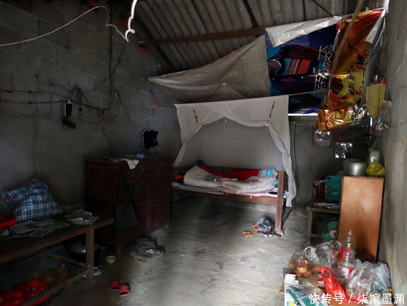 其实阿龙的蜗居很小,只消几平方米。那是由于爸爸物化后,村干部让阿龙搬出原本的危房。