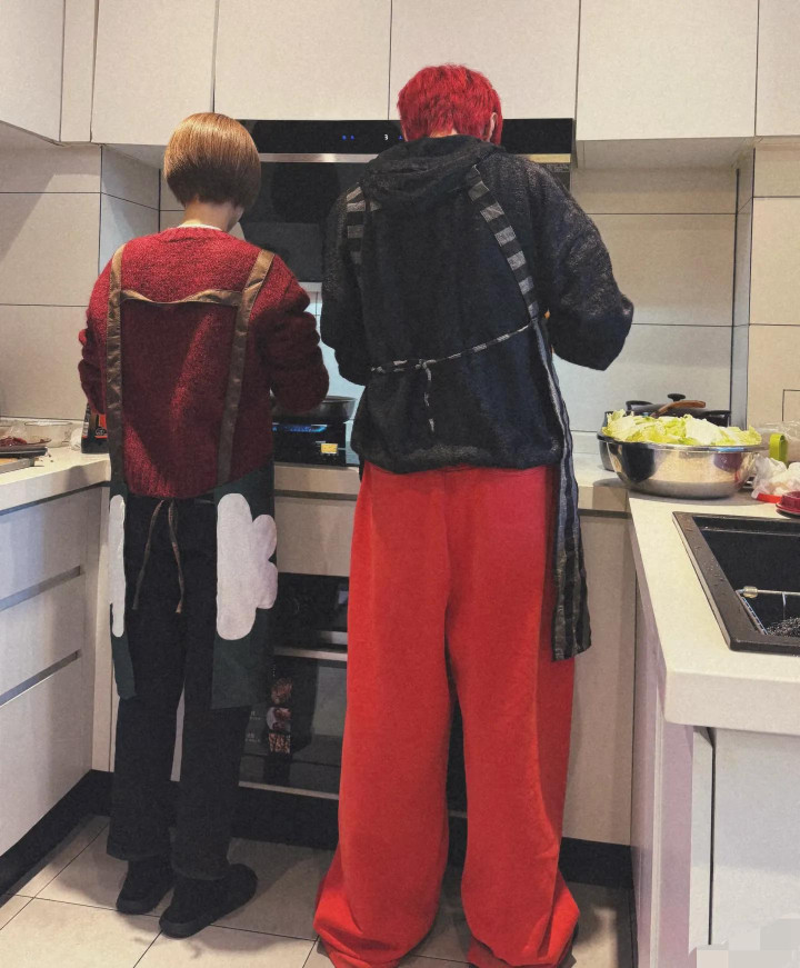 两东说念主下厨的背影也被纪录下来,光看背影都很般配了,况兼李荣浩在家里烧个饭还穿的这样骚包,确凿是潮男呀!