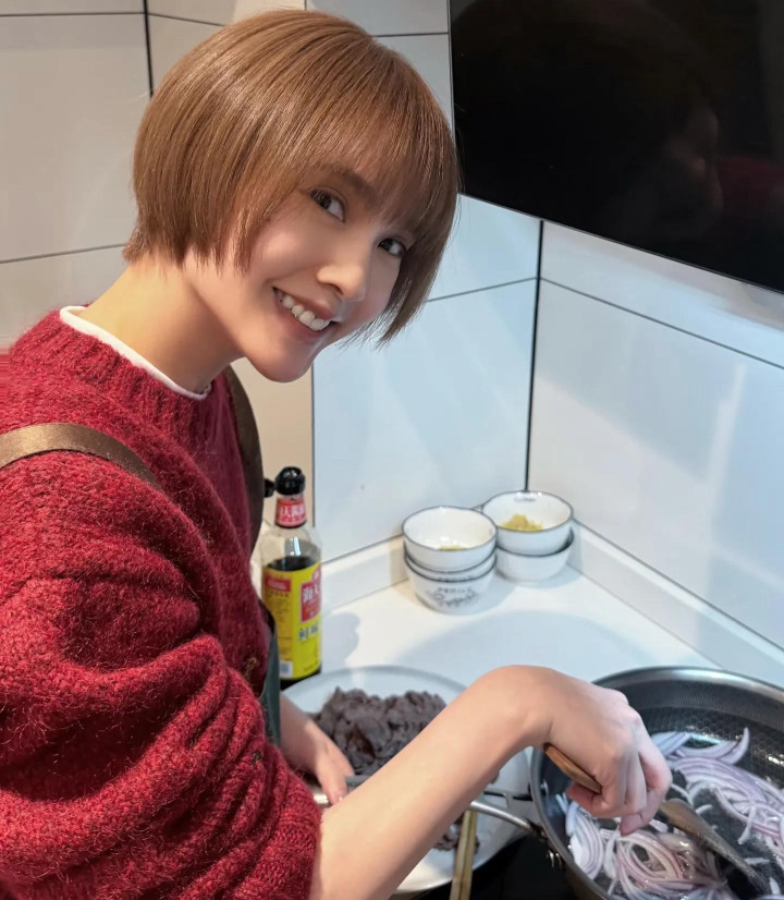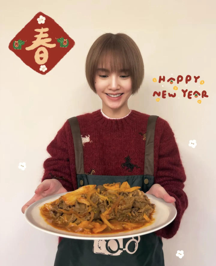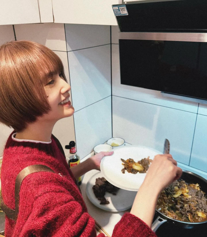 因为是新年,杨丞琳还挑升下厨烧死起了除夕饭,她戴着围裙戒备其事的,烧完菜之后,她还端着展示了一番。