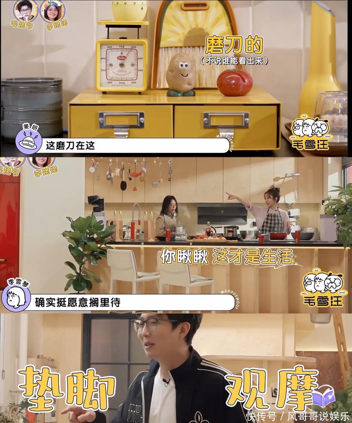 吃饱喝足后,毛不易李雪琴还参不雅了姜妍的厨房,看到捣蒜器、研磨器、磨刀石等萌物时,俩东谈主都感到极端少见,毛不易一脸精采暗示这即是他的“梦中情屋”,李雪琴更感叹和姜妍过日子的东谈主可太幸福了。