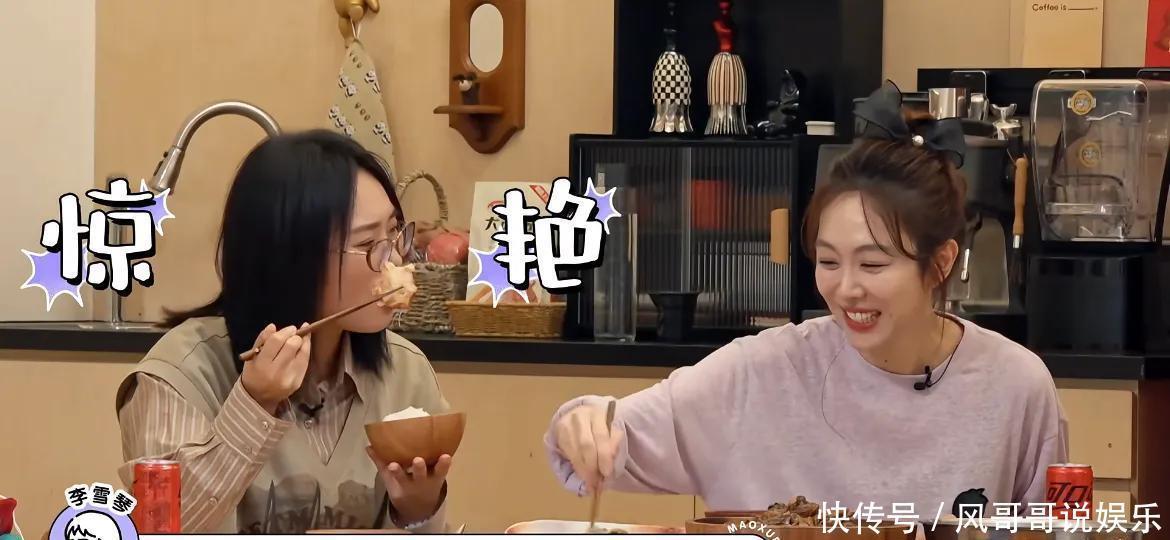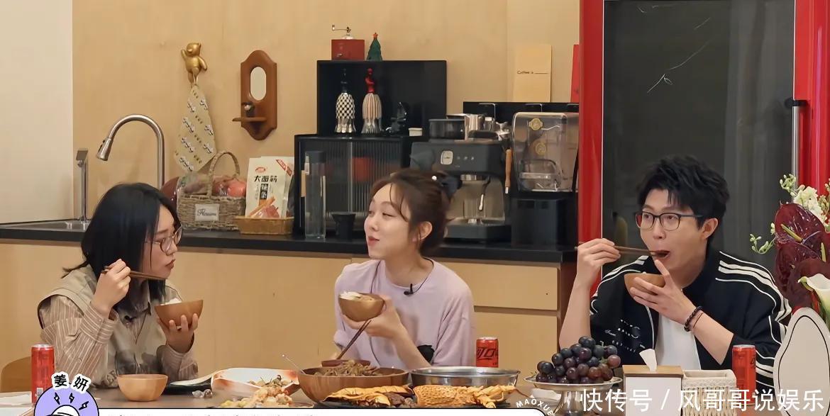 三个东谈主边吃边聊,李雪琴毛不易都对姜妍的厨艺拍桌感叹,直夸太惊艳。