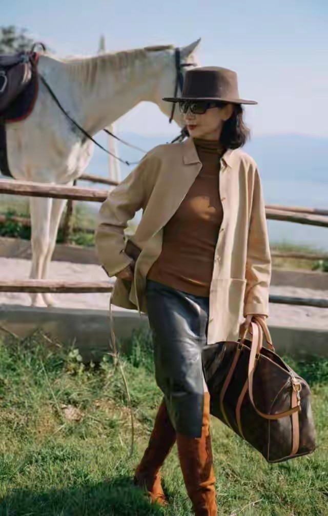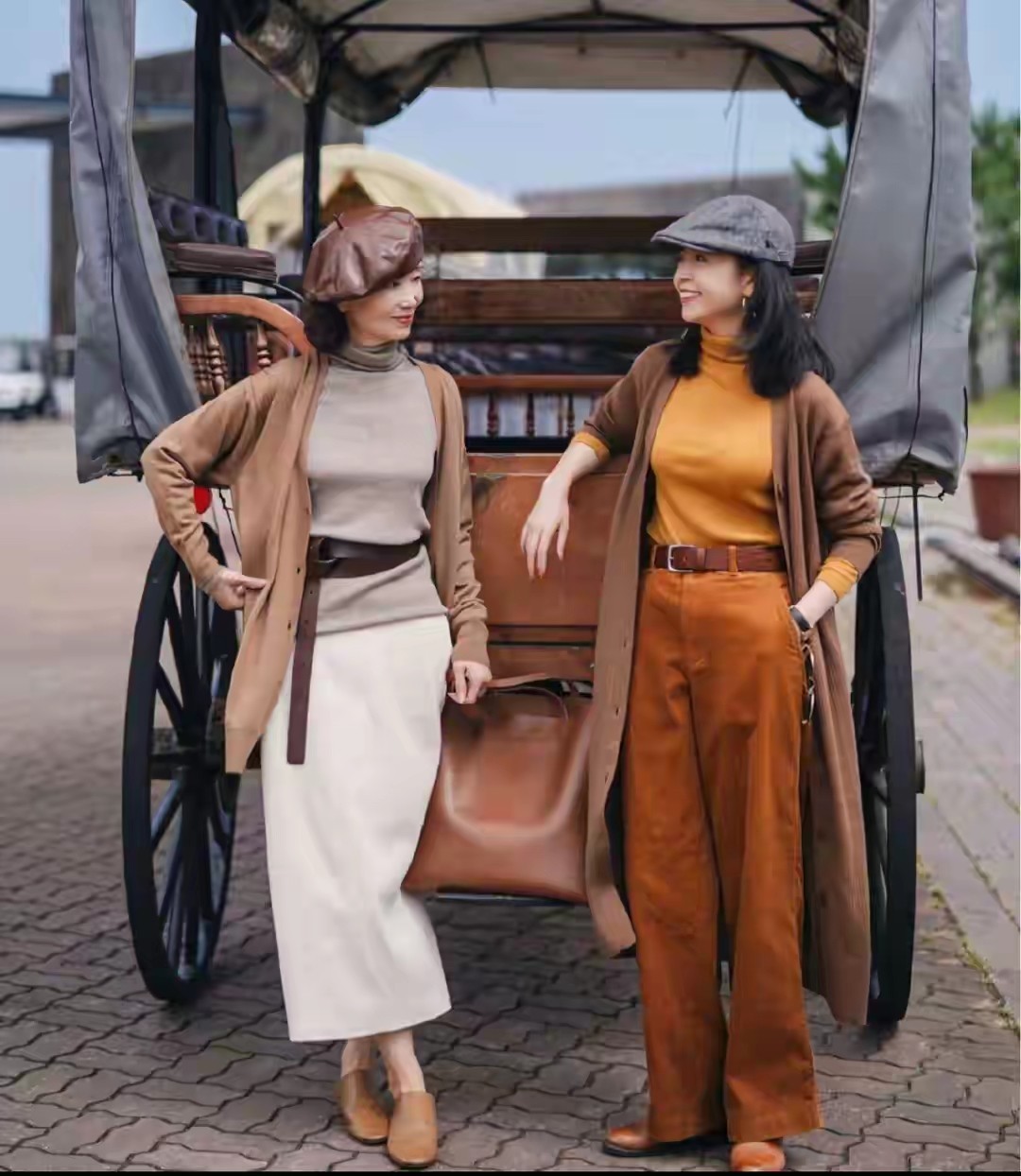 千万不要在老年的工夫去遴荐不暗千里的衣裳,合计我方依然不年青了,不敢尝试年青时的一些纯色系大红色的衣裳之类的单品,其实这么的念念法是造作。
