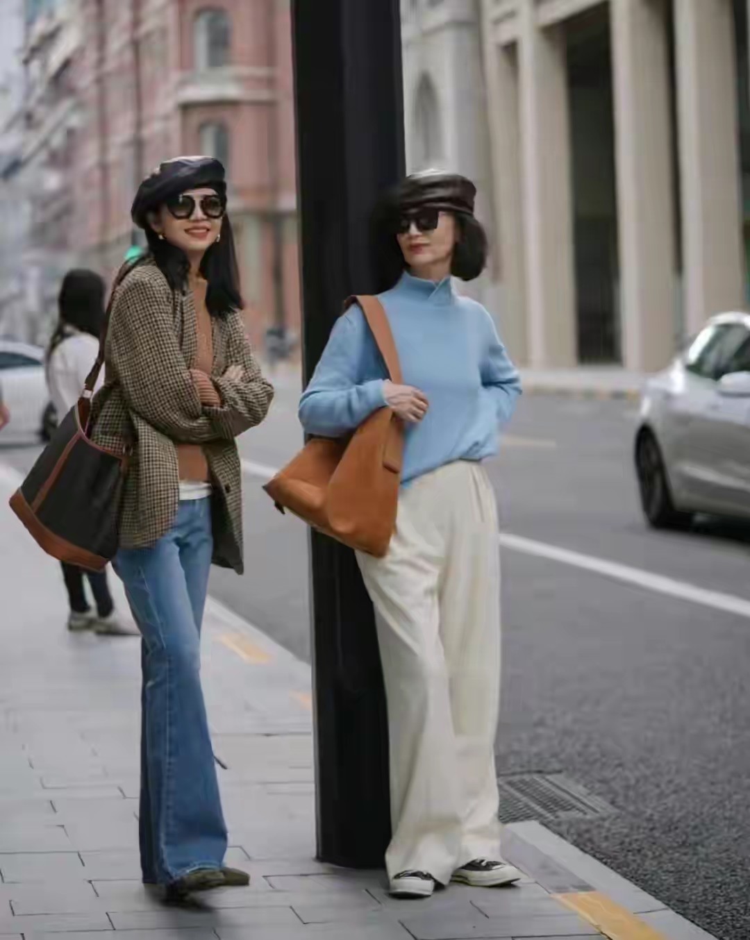 腿型不是很好,这工夫应该学习右边的这位素东说念主博主,班师用一条雾霾蓝的西装阔腿裤来穿搭,不错把腿部的残障给遮住,再加上一款小宽松的蓝色古道上衣,大约使得穿搭者身形优雅,挺拔气质也显得高等。