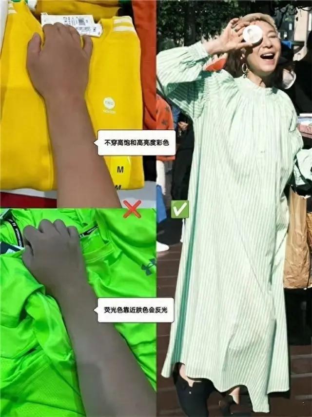 色调也不可过于绚烂,举例底下这种高足够高亮度彩色的黄色古道上衣,或者是荧光色的衣裳单品,穿在身上之后,反而会显得你的皮肤显黑,如若你真可爱彩色系的衣裳,不错班师遴荐右边的这一件淡色系的条纹连衣裙来穿搭,反而会更从简大气。