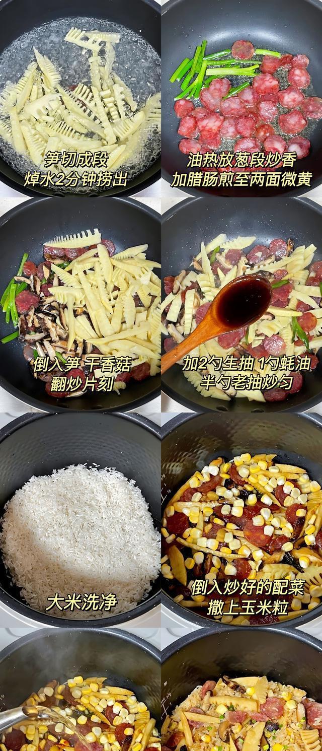竹笋香肠焖饭作念法:
