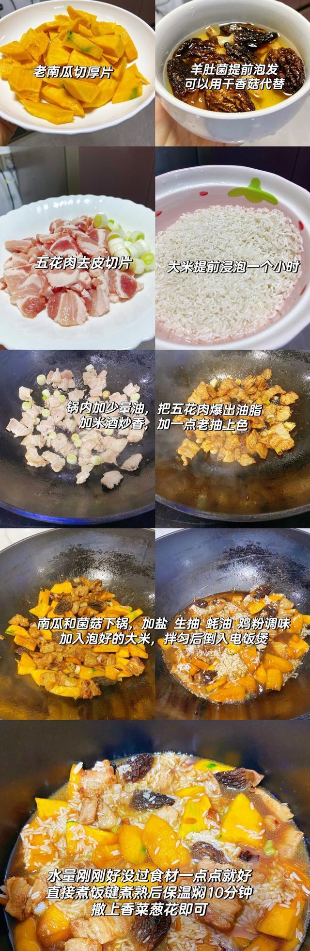 南瓜五花肉焖饭作念法:
