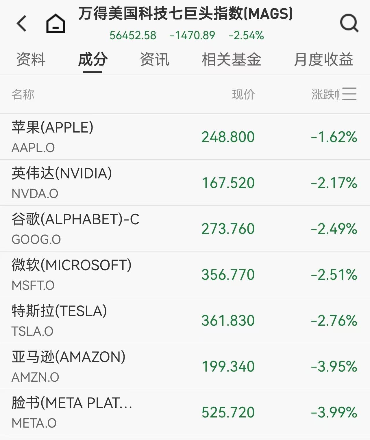 盘面上,好意思股科技巨头普跌,成为牵累大盘的主要力量。限制收盘,Meta、亚马逊跌近4%,微软跌2.51%,谷歌-A跌2.34%,英伟达跌2.17%,苹果跌1.62%,特斯拉、博通均跌超2%。其中微软在皆集4日着逾期,较前年10月的历史高点回撤幅度已接近34%,在科技 “七巨头” 中进展尤为疲软。